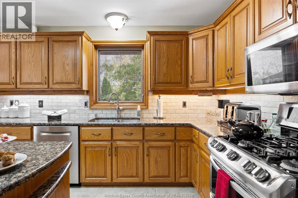 Prime tecumseh home now available! This full brick, custom-built beauty is ideally located near manning rd amenities, schools, 401 access & riverside trails. Original-owner pride shines throughout. Offering 3–4 bdrms, 3 full baths incl. A primary suite w/ ensuite & w. I. C., plus a grand foyer & hardwood floors. Spacious kitchen w/ island, granite counters & pella windows. Approx 1600 sq ft per level w/ true 2. 5-car garage & convenient grade entrance to bsmt (ideal for potential in-law suite). Lower lvl is perfect for entertaining— open concept w/ fireplace, large wet bar & 2nd grade entrance to backyard. Dream laundry room w/ 2 washers & dryers and lots of cupboards and potential for second kitchen! Updates: furnace & a/c (2019), roof (2007), cvac & alarm. Situated on a large pie-shaped, beautifully landscaped lot backing buster reaume park—no rear neighbours! Covered sundeck & patio area below complete this perfect family home. All appliances included, flexible possession! (id:4555)