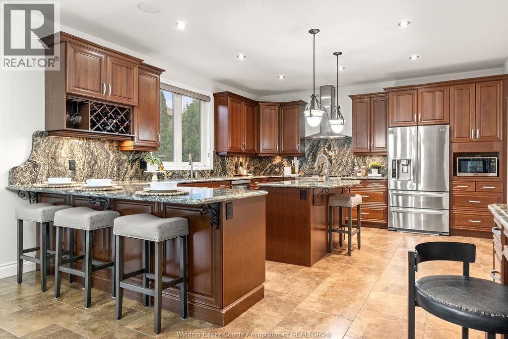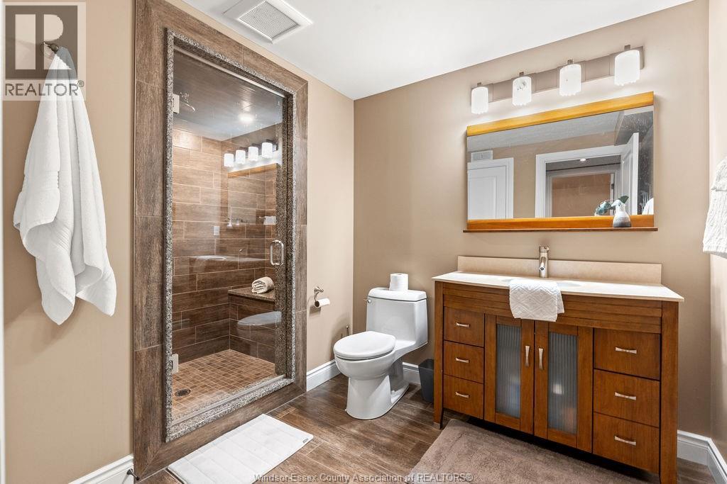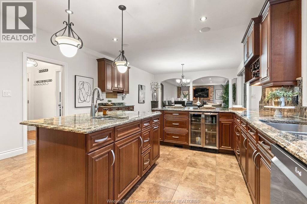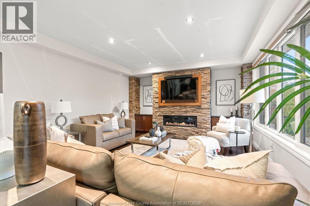 Stunning 2,374 sq ft custom 1. 5 storey in lasalle, kiddie corner from paul wilkinson park. Exceptional curb appeal with whimsical landscaping, exposed aggregate drive, and covered porch with new epoxy finish. Open concept main floor features 9-ft ceilings, a 17x15 dream kitchen with walk-in pantry, dining with elegant backyard views, cozy family room with gas fireplace, 2 bedrooms, full bath, and convenient laundry/mudroom. Private upper-level primary suite with luxury ensuite, double shower & double sinks, and massive custom walk-in closet. Fully finished basement includes family room with gas fireplace, custom wet bar with dishwasher, wine rack, and spot lit liquor shelving, 2 large bedrooms, steam shower bath, and tons of storage. Grade entrance to your private oasis with in ground pool, hot tub, firepit, euro-shed, mature cedars, 4-zone sprinkler system, and covered porch with ceiling fan. Truly an entertainer’s dream in a prime lasalle location! (id:4555)