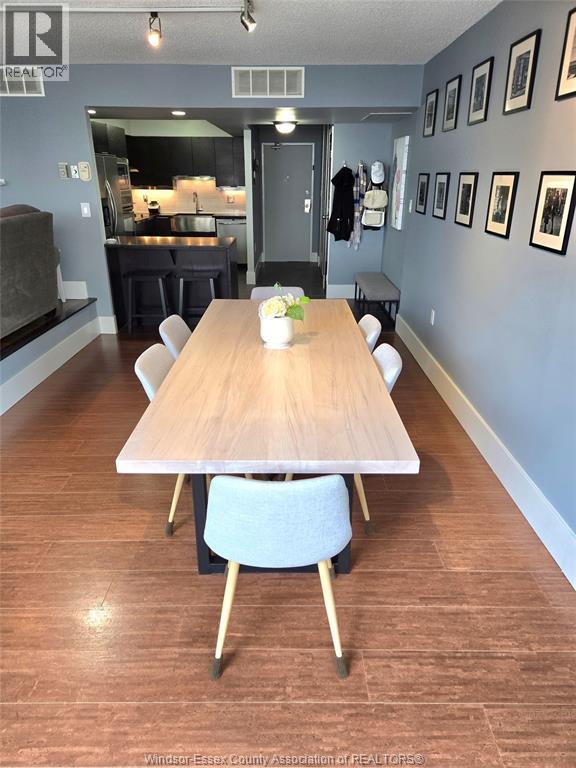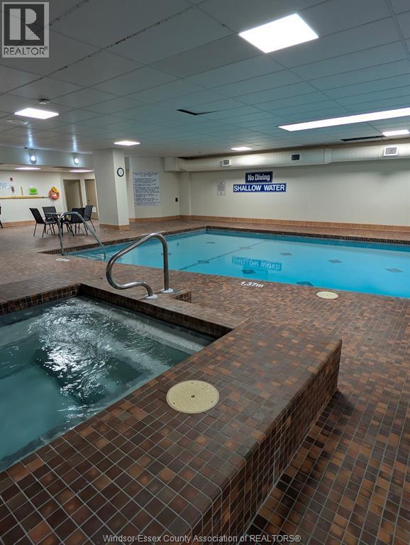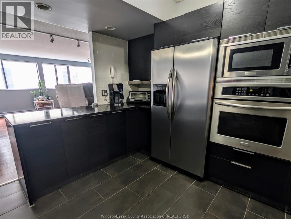 Discover sophisticated downtown living in this meticulously updated 2-bedroom,1 bath residence located within the prestigious royal windsor terrace. Spanning a generous open-concept floor plan, this condo has been thoughtfully renovated to meet the standards of the discerning homeowner. Features expansive hardwood flooring that flows seamlessly through the principal living areas, complemented by an abundance of natural light from numerous large windows. The gourmet kitchen serves as the heart of the home, boasting custom cabinetry, premium stone countertops, and a functional breakfast bar. Main bathroom has been fully modernized with contemporary vanities and fixtures. Indoor heated pool, sauna, hot tub, and a fully equipped fitness facility. An expansive rooftop terrace offering breathtaking views of the detroit skyline, alongside a professional party room with kitchen facilities, and library to pass the day. Secured parking, same-floor laundry, and storage unit on floor. Situated at the corner of pelissier and park street, you are steps away from windsor's finest dining, the scenic riverfront trail, and the windsor-detroit tunnel. This property offers the perfect balance of luxury, security, and urban convenience. (id:4555)